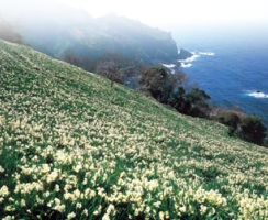 日本海を見下ろす絶好のロケーションの中にある水仙ランドは、可燐に咲く水仙が見られる広場。 |